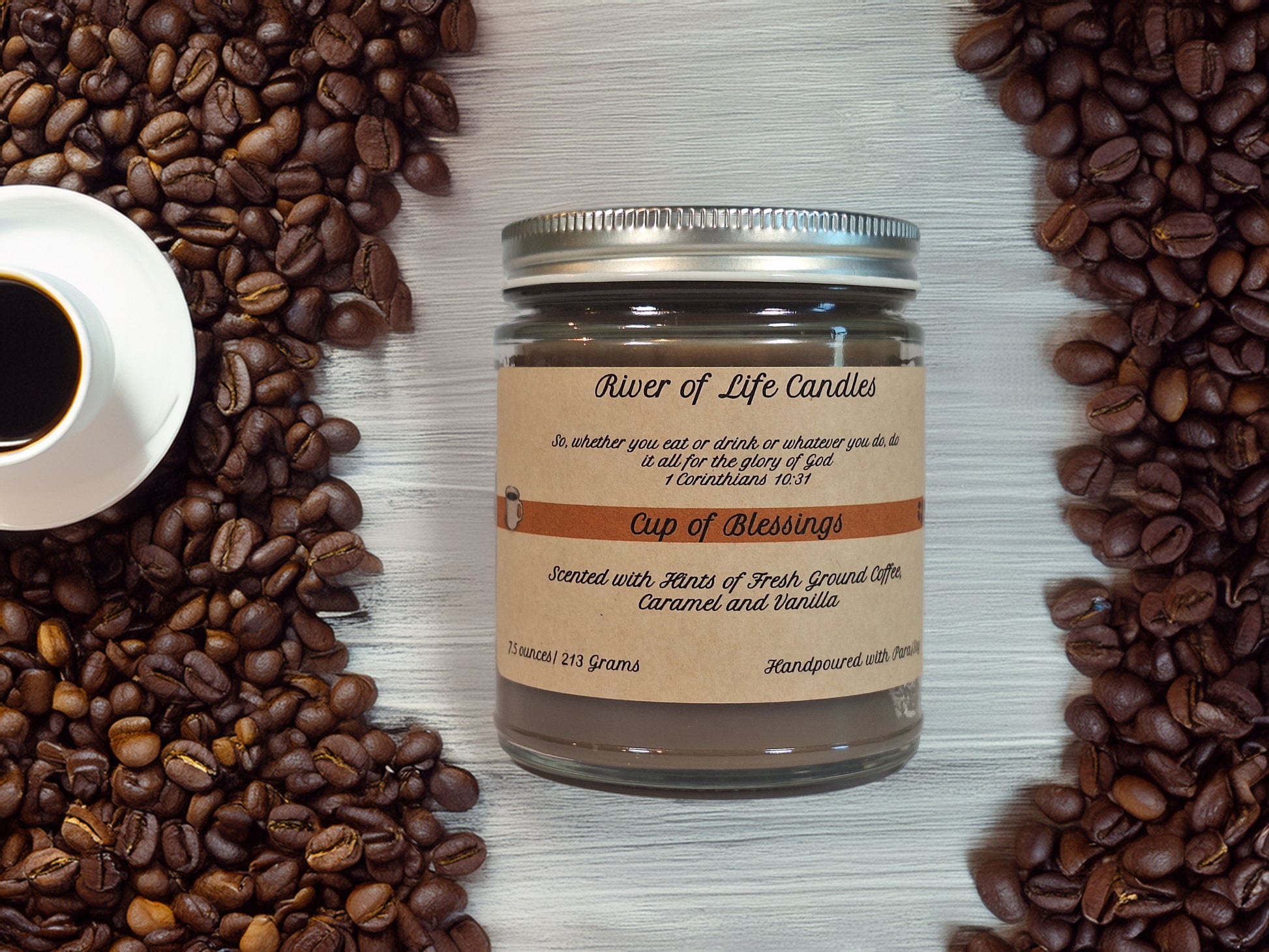 Start your day wrapped in warmth and gratitude with our Cup of Blessings candle. Infused with the comforting aroma of fresh ground coffee, swirled with sweet caramel and creamy vanilla, this candle captures the joy of morning fellowship and the richness of God's daily provision.