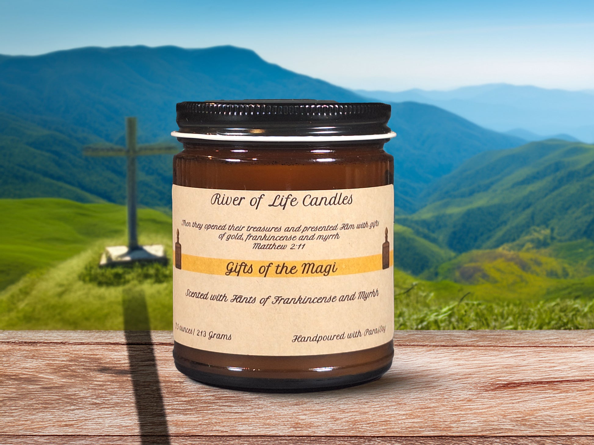 Bring the timeless story of the Magi into your home with this beautifully handcrafted candle from River of Life Candles. Inspired by the treasures presented to the newborn King, this candle is infused with the warm, rich aroma of frankincense and myrrh, offering a fragrance that is both sacred and soothing.