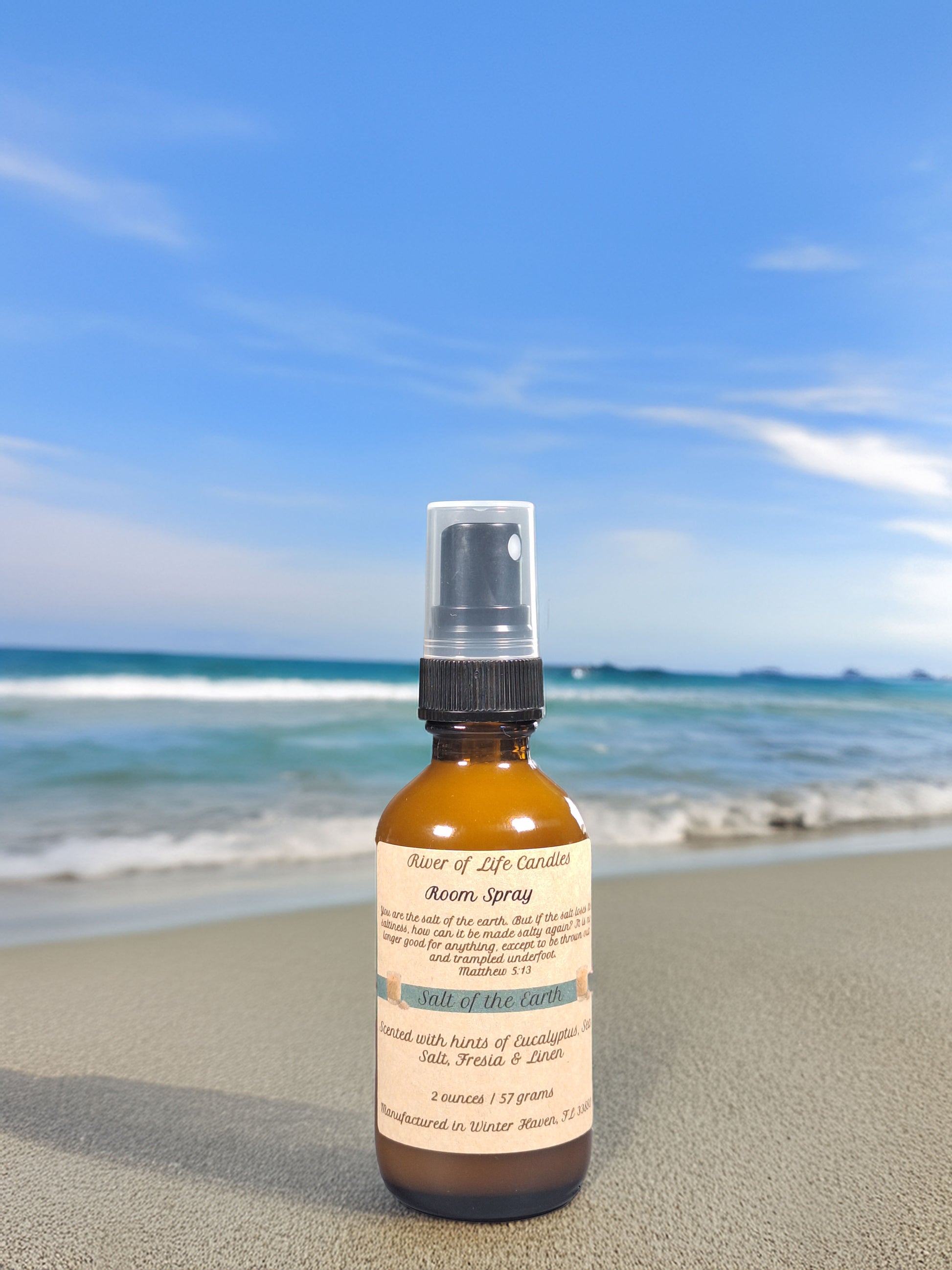 Refresh your space with a divine touch of serenity. Our Salt of the Earth Room Spray combines the pure, crisp essence of eucalyptus, sea salt, freesia, and linen to create a calming atmosphere that elevates your surroundings. Inspired by the scripture from Matthew 5:13, "You are the salt of the earth," this fragrance will remind you of the grounding power of nature and faith.